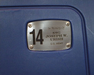 The public is invited to participate in a Tribute to Loved Ones. For only fifty dollars you can purchase a 2.5" by 2" commemorative name plaque. The plaque is permanently attached to a seat at the Cambria County War Memorial Arena.